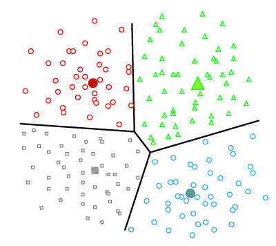 Uses a predefined number of clusters and then iteratively measures the distance between the clusters and the centroids using distance metrics. For example: K-Means Clustering