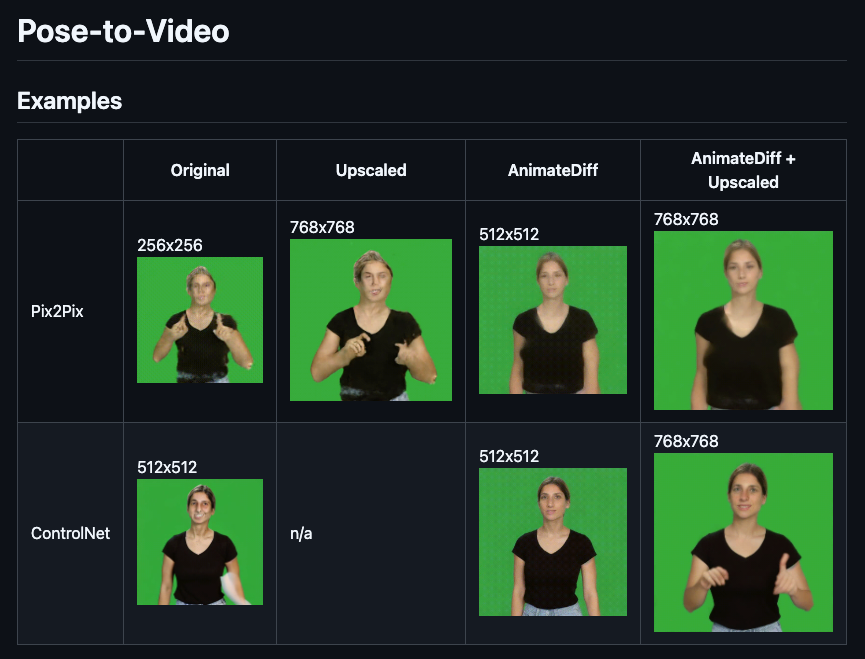 Below is an example of how ControlNet improves video generation and diffusion in sign language production:
