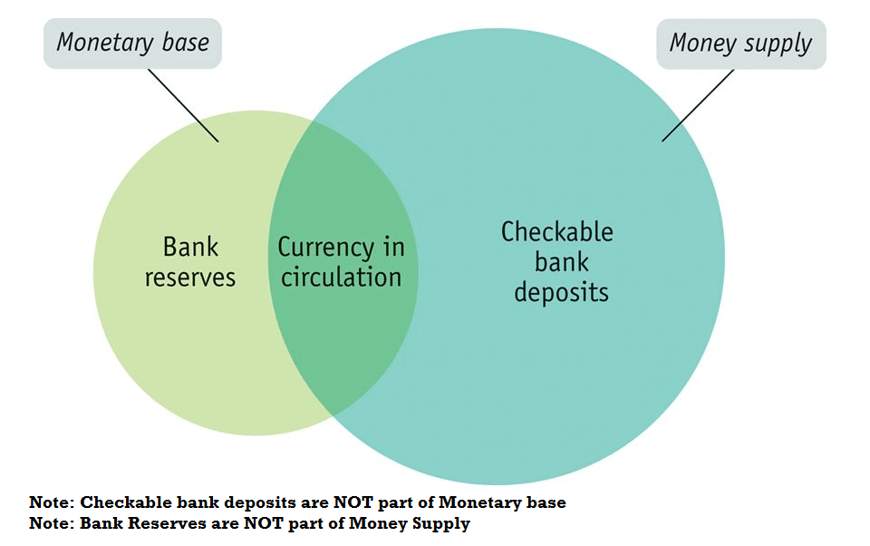We have three measures of the money supply: 4. Monetary Base (M0): - Includes bank reserves (not actually money) and currency (money) 5. Money (M1): - Includes currency, checkable deposits, and savings deposits - This serves as the medium of exchange in the United States 6. Money and Near Money (M2): - All of M1 + small time deposits + money market mutual funds