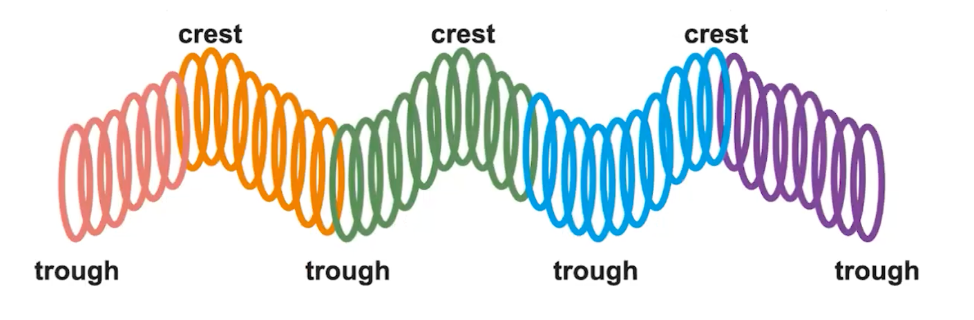 • In drawing a transverse waves, the high points are called crests and the low points are called troughs