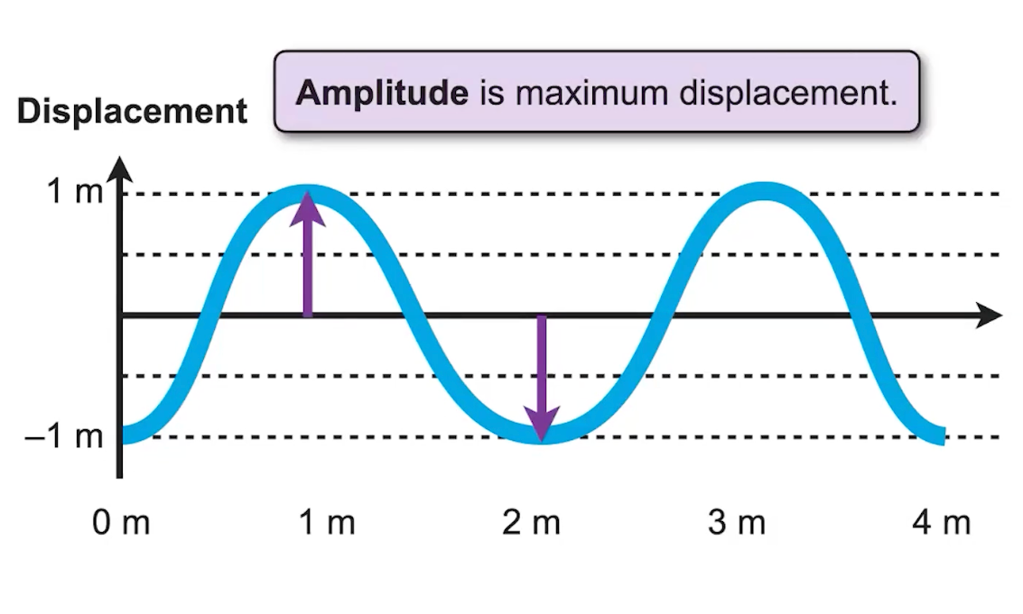The amplitude is the maximum displacement of the wave from the equilibrium position. An amplitude of a sound wave is equal to the loudness of the soundwave. Any single point on a periodic wave will move a distance of four amplitudes in a complete cycle.