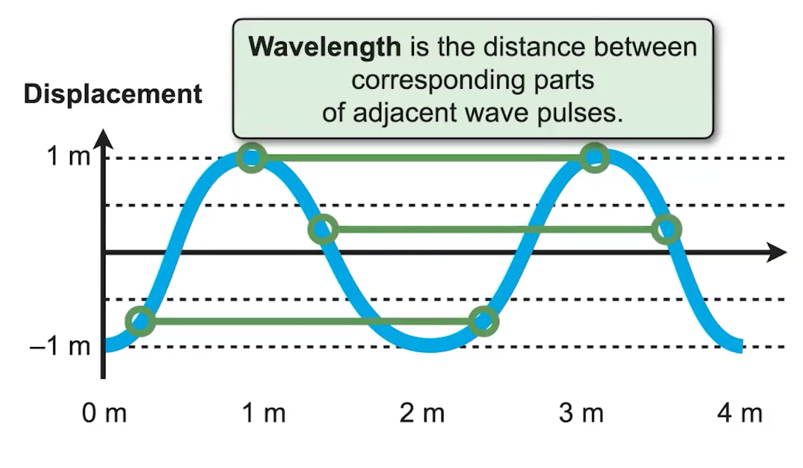 The wavelength is the distance between any two corresponding points of adjacent wave pulses: